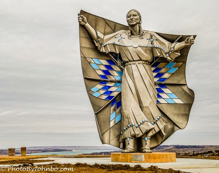 Her name is Dignity. The Native American woman stands some 50-feet (15 m) tall. Sculpted of stainless steel, “Dignity represents the courage, perseverance and wisdom of the Lakota and Dakota culture in South Dakota,” according to artist Dale Lamphere who used three models of Lakota Native Americans to create the face. If you travel via I-90 through South Dakota, you’ll see Dignity high on a bluff between exits 263 and 265. At her back is the mighty Missouri River, the longest river in North America.