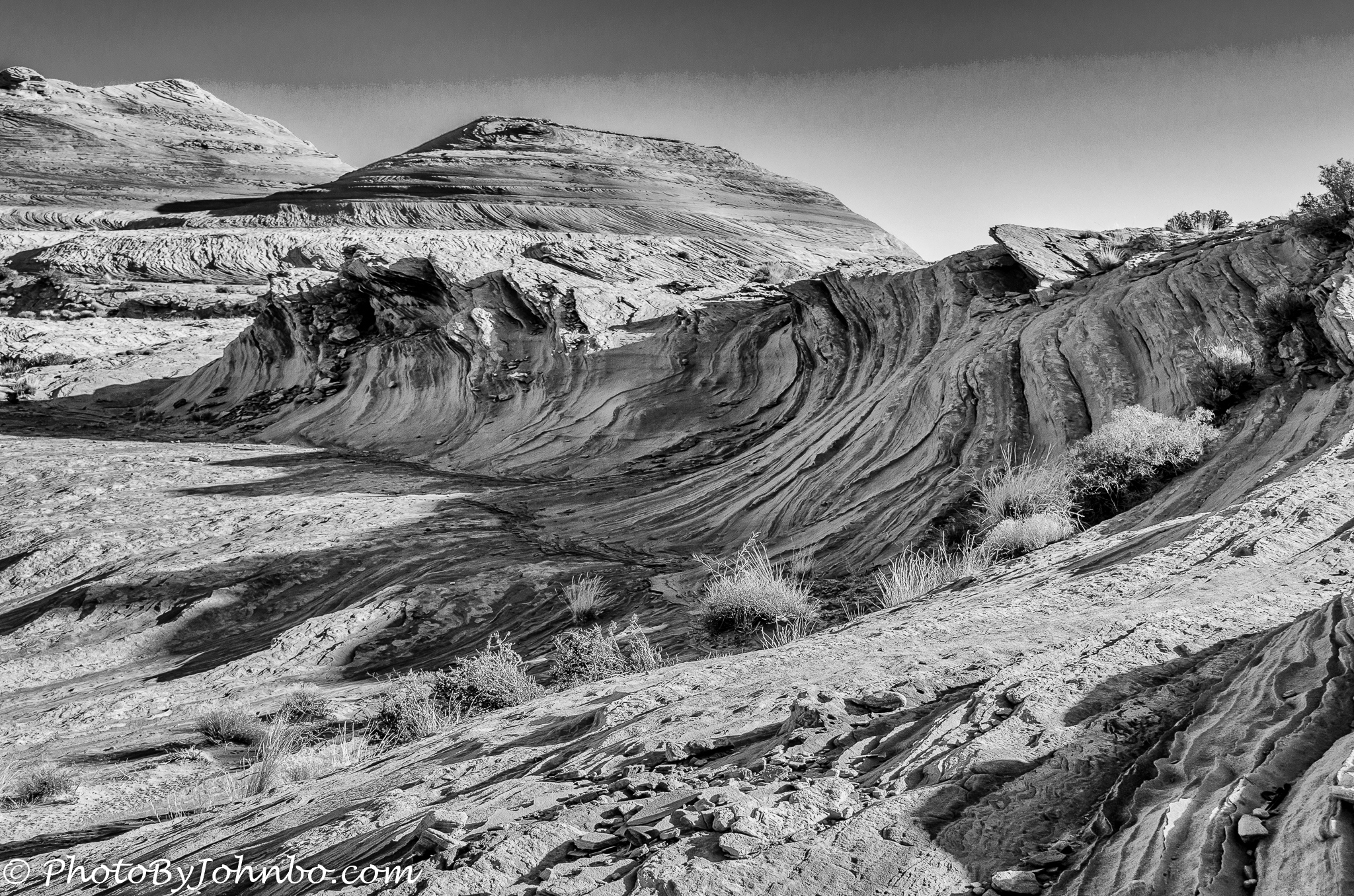 Unlike the two opening images, the image immediately above is a natural pattern, not man-made. The soft sandstone at Page, Arizona has been molded by the wind to create a natural “breaker” not unlike what the wind does to water in the open ocean. It obviously took millenia for the wind to shape this pattern in the rock.