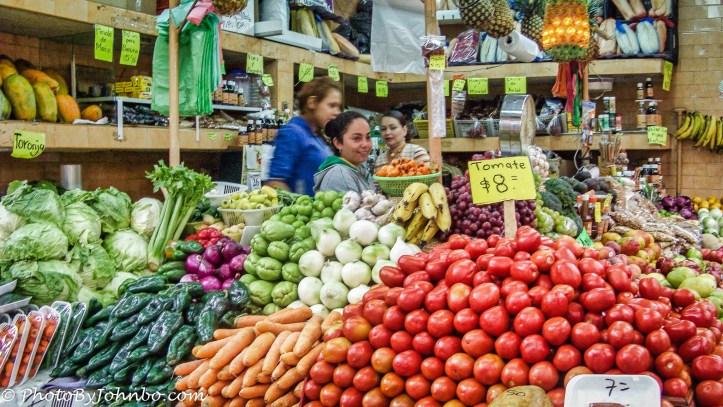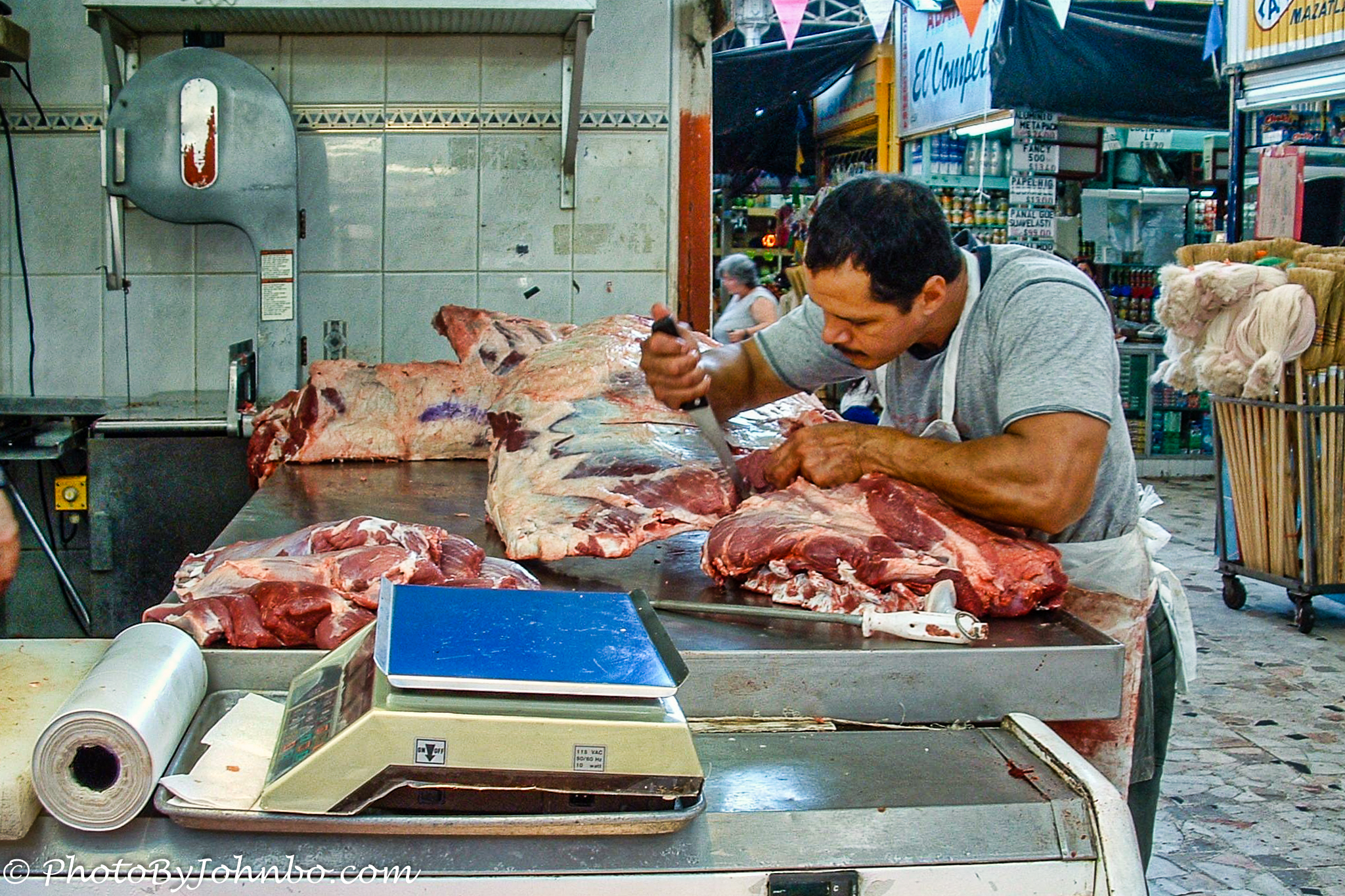 A warehouse market in Mazatlan allowed me to capture some of the everyday lives of the vendors such as this butcher concentrating on a cut of meat. In the photo below, a vegetable vendor displays the colorful collection of fresh veggies.