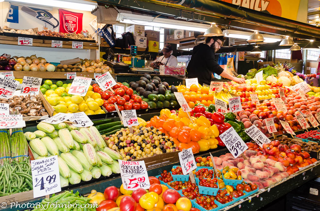 When it comes to veggies, Mother Nature provides an infinite color palette as can be seen in this vegetable market in Seattle, Washington. The Public Market is a tourist attraction of some repute where fishmongers, florists, grocers and even the very first Starbucks Coffee Shop are steps away from each other.
