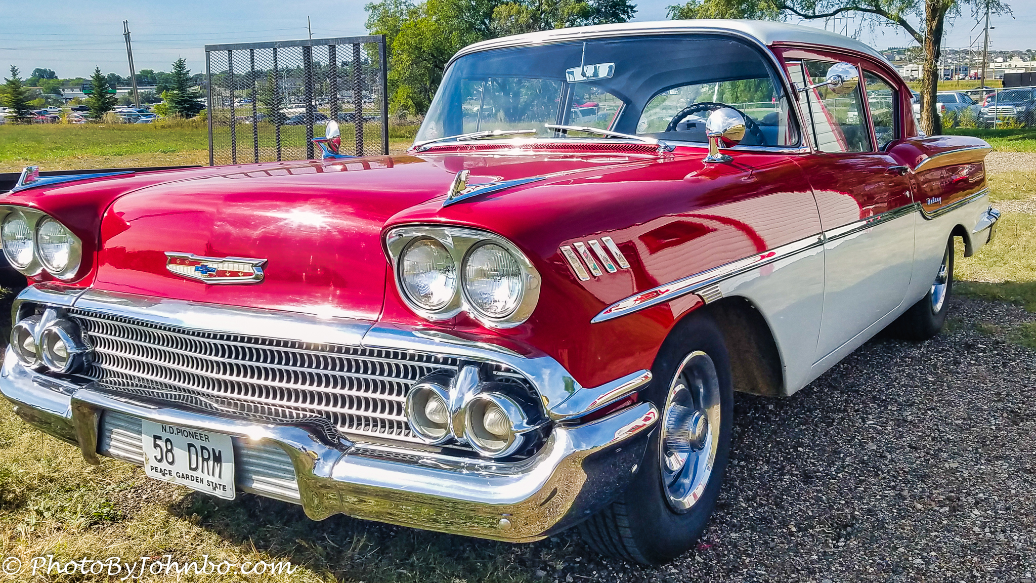 This weekend it’s Apple Fest at Buckstop Junction (a future post will fill you in on the details of that celebration.) On display in the vintage historical society’s village was a beautiful 1958 Chevrolet. Being somewhat of a classic car nut, I wandered over to it and was struck by the model nameplate, Delray. I’m familiar with the entry level 150 model, the mid-level Biscayne, and the venerable Bel Air popular in the mid-1950s. I’d never heard of the Delray. This beautiful example gave me the impression of a higher end Chevrolet and appears to even have the air conditioning option, either dealer or factory installed.