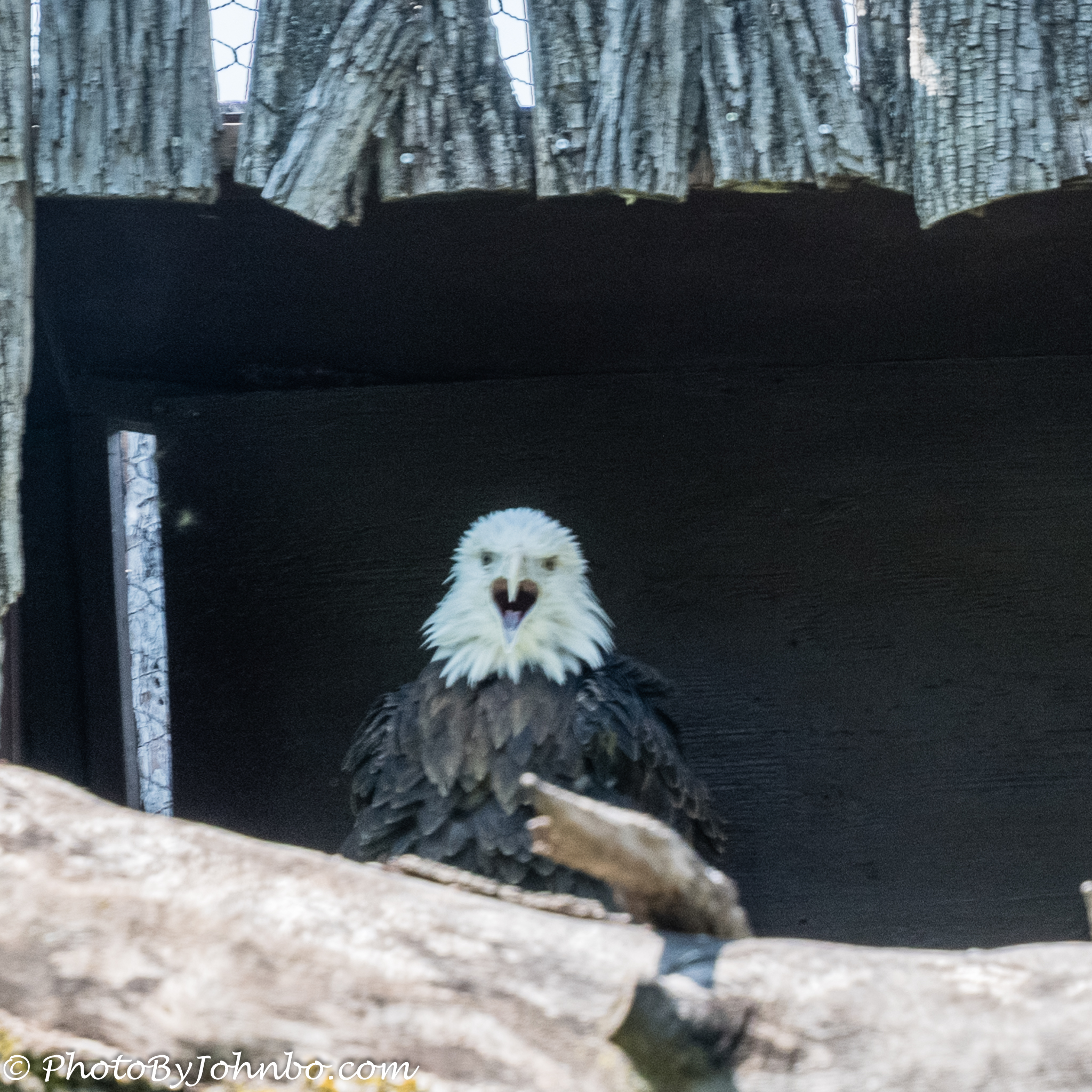This bald eagle was sitting in a protective area apparently designed to give him shade. As I am writing this, I recall reading a sign indicating that he suffered some injury and was placed in the zoo to provide care. Truth is, I don’t remember the specifics as I am writing this and their website doesn’t mention anything about it in their listing of birds and animals on exhibit.