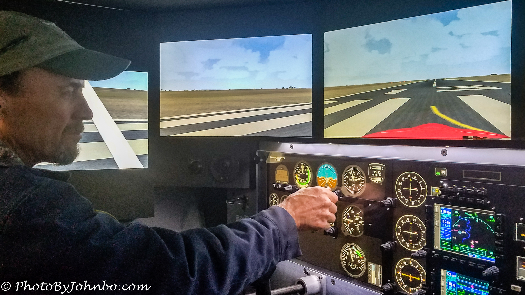 It was fun to fly with the “instructor” varying the weather from a summer weather takeoff to a change to winter snows and a howling wind… Truth is, they simulate flying, but control inputs aren’t totally realistic. Still, it was fun to fly.
