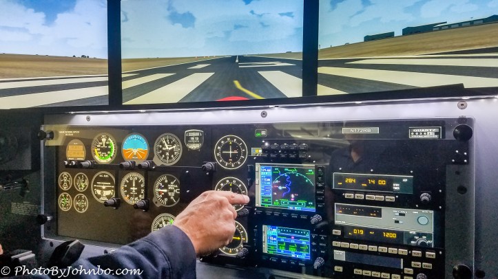 As you can see by this photo, there are side windows as well as the windshield in front. Mike Williams of Clear Skies Aviation gave us a demo and allowed some of the pilots to take it around the patch. Flying a simulator isn’t the same as flying the real thing, but they are great procedure trainers. The RedBird even feels like a real aircraft in that it moves as you fly it giving your senses the realistic feel of flight operations.