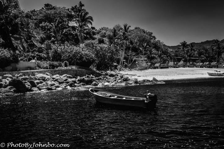 I can use a trick long known to motion picture photographers from the earliest days of Hollywood ‘B-movies’, stars not under contract to work at night? Shoot during the day and reduce the exposure. That’s what I did for this shot of someone heading back to shore. Yelapa is a stop on a cruise excursion. It’s only accessible by boat having no roads leading to the village. Posted below is the photo I started with, cropped and prepped. Obviously, it was captured at mid-day, a time when available light is probably the least magical.