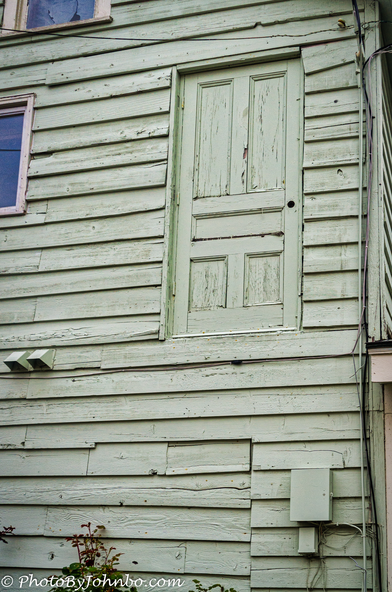 This door to the second floor of a building in Skagway, Alaska was not abandoned, nor was the stairway removed at some point in its history. In fact, today, it’s a point of interest on a tour of the city’s early days of prospectors and ladies of the evening. The door opens to the second floor brothel above a bar. Patrons would typically enter through the bar, however those who’s profession would not abide public knowledge of their use of a brothel had their own special method of entrance. A ladder was put out nightly and those who wished to enter under the cover of darkness would find their way upstairs.