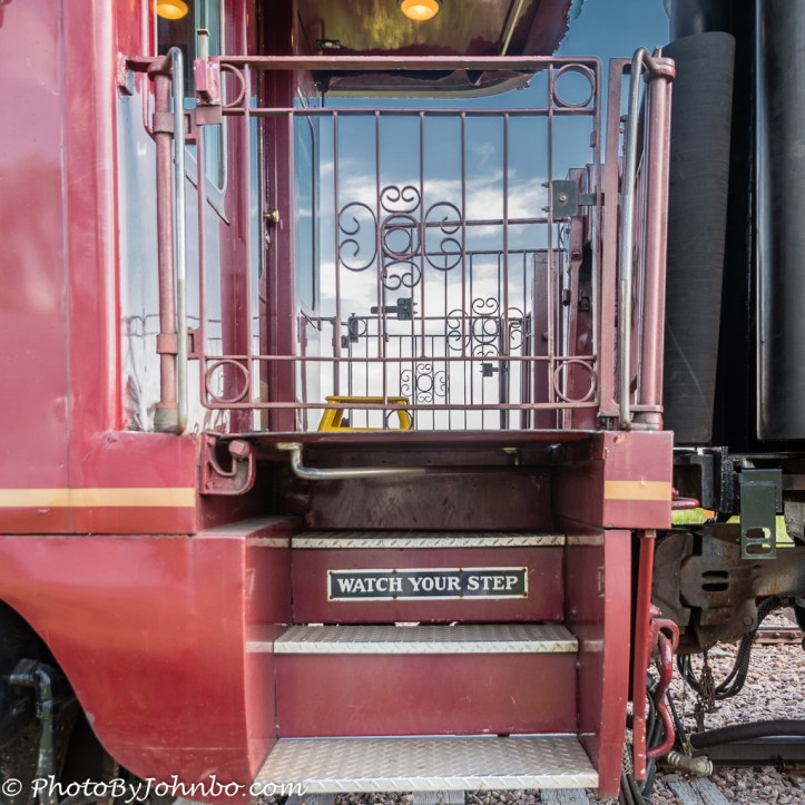 This doorway is literally to another place. Climb those stairs, open the gate, and enter the doorway on the left. When inside, have a seat and spend some time riding the iron rails to somewhere else. With an old steam train and the vintage cars that it pulls today, the story is about the journey, not the destination. When these cars were in service originally, they delivered their contents to a new life elsewhere or to visits with friends and family they likely haven’t seen in some time.