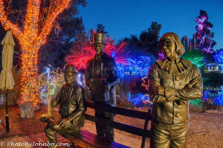 I decided to take my Sony RX-100-V camera as it has the fastest lens I own. Even so, the images I captured were not noise-free, though the details were visible. I submit for your review a small gallery of images captured on our visit to Phoenix Zoolights. In most browsers, you can click on an image to enlarge it and to scroll through the gallery.