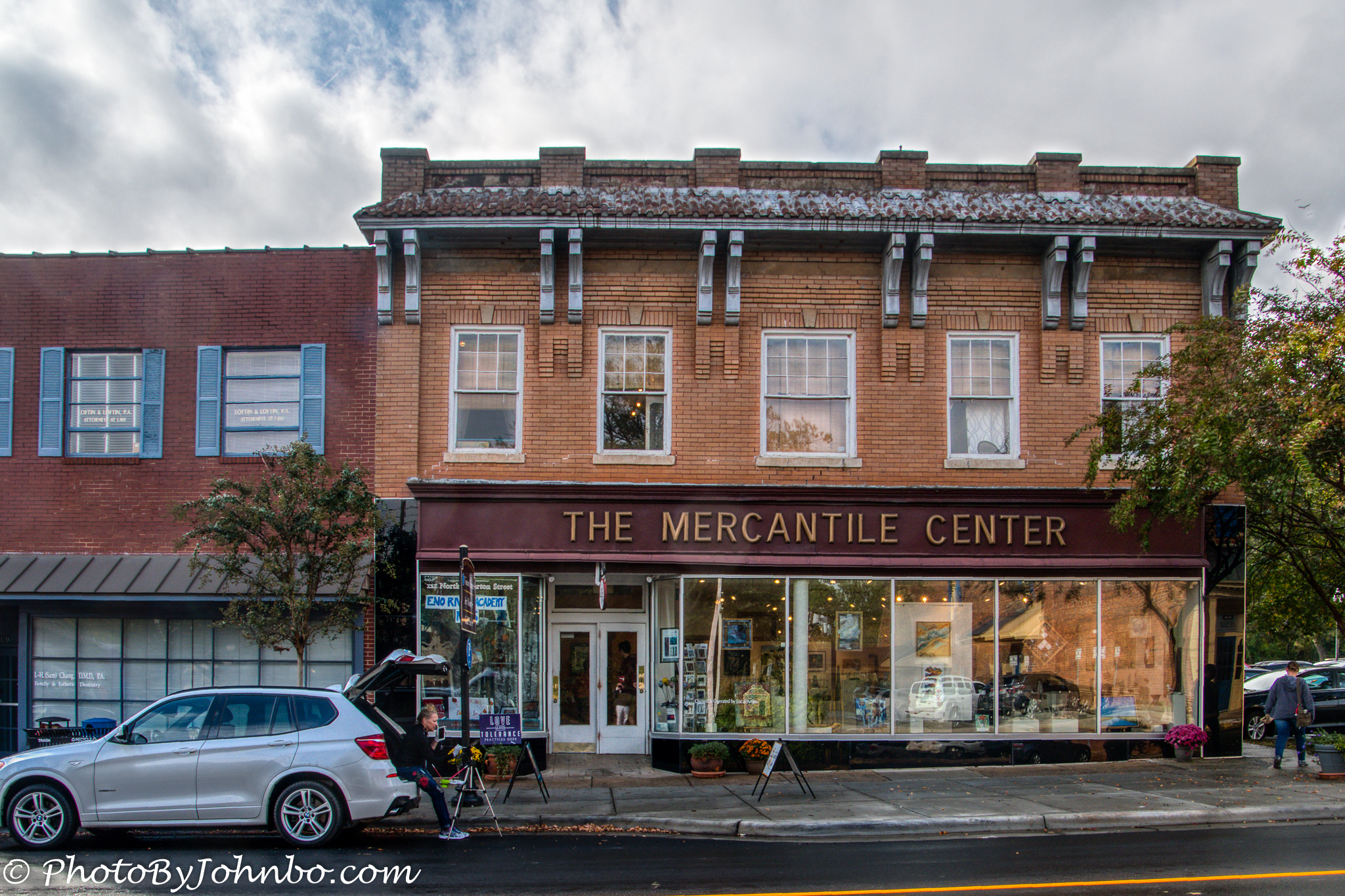 As the day progressed, the weather began to clear and more people ventured outdoors. In front of The Mercantile Center, an artist sits on the tailgate of her SUV and paints a street scene view of the old town.