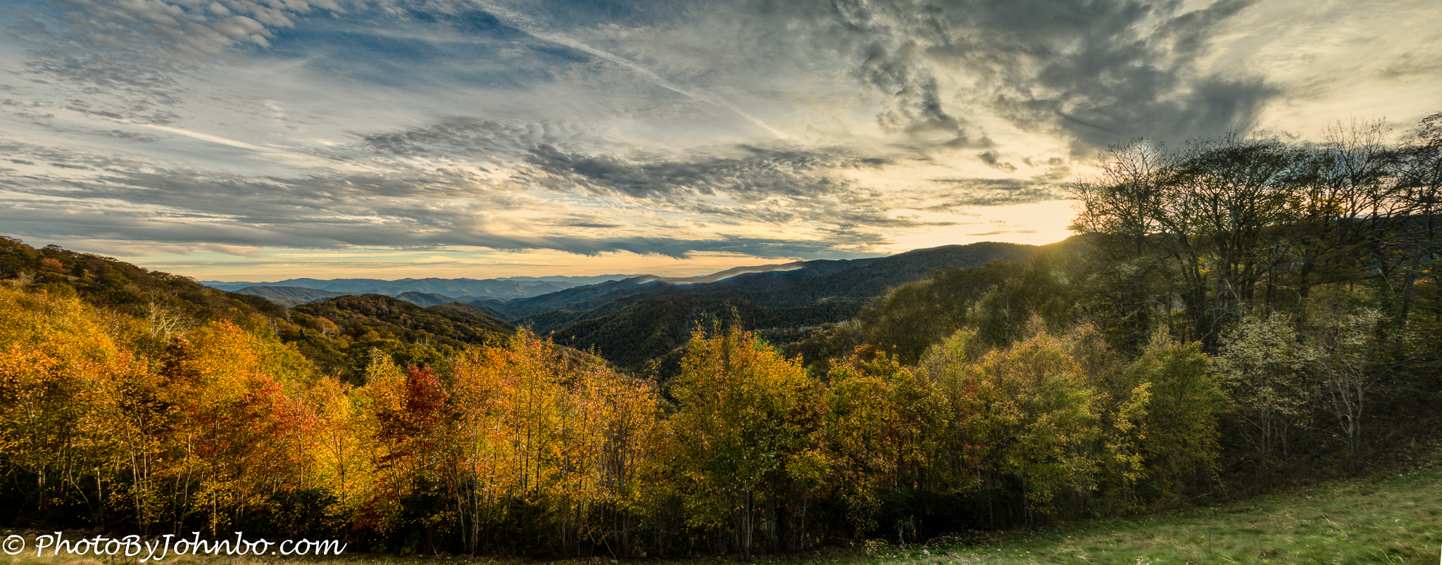 All along highway 441 are many viewpoints, so if you decide not to fight the traffic to get to Clingman’s Dome, you can certainly capture majestic views of the park elsewhere. This park is one of the few where I captured many panoramic images, two or more vertical photos stitched together by Lightroom. The opening shot is an example, as is this post’s closing shot, a sunset view of the park.