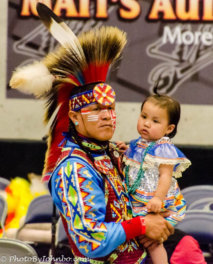 Over the years, I’ve learned to appreciate the native cultures indigenous to North America. I’ve visited Native American museums, historical sites, and most recently, some Powwows. Competition powwows are an attraction not only for Native Americans, but for people of all backgrounds. By the late 20th century, the greater interest in the heritage of the Native American and the influx of prize money from sponsors, often Native American casinos, has led to a circuit of popular powwows across the country. The image above features a father and daughter, he intent on watching the competition, her, maybe not so much.