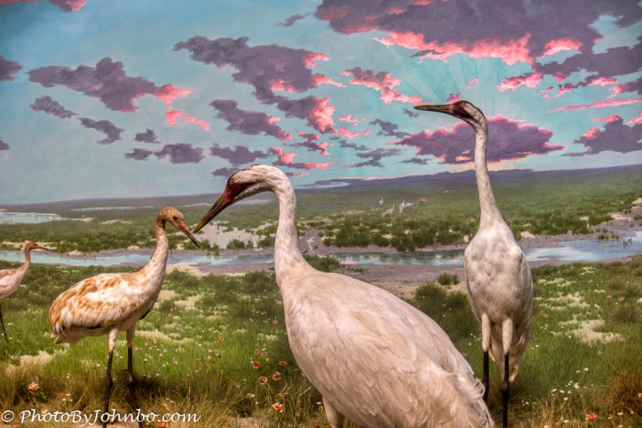 It would be almost too easy to pass off these images as real wildlife photography. The biggest problem that a photographer deals with is the large glass wall separating the exhibit from the visitors. Many a shot was rejected as I processed the images because I didn’t notice a reflection on the glass from a nearby exhibit or lighted hallway. Even though I watched carefully for reflections, until I saw them on the screen at home, I didn’t notice them. In a few cases, Photoshop Elements came to the rescue to remove reflections from the skies. More photos of the dioramas are in this week’s gallery and a special gallery presentation from the museum will be featured next week where I saved my best images from this visit.