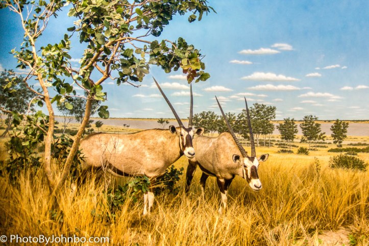 And that brings me to the topic at hand, a virtual safari to view some of the iconic animals and landscapes of the cradle of civilization. The displays like the example in the opening photo present a glimpse into the vast plains and great deserts. Though the photos I captured appear almost as if the animals are paintings, they consist of taxidermy, simulated plants and foreground elements, and beautifully painted backgrounds. Where else could I stand and study the exposure, composition, and other technical aspects of an image as a predator dashes after its prey. The displays are not only works of art, but are scientifically and technically as accurate as they can be made given the small physical constraints.
