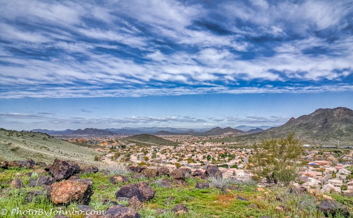 About the photo: The view to the northwest features some of the city of Glendale and other suburbs in the Phoenix metro. The many small mountains that ring the valley are visible in this view captured by my Samsung S6 cellphone. In most browsers, you can click on a link to enlarge it for a better view.