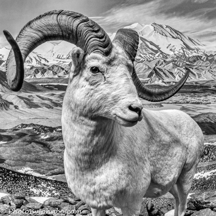 For my last example, I focus on the harmony between the natural world and its inhabitants. In this case, a Rocky Mountain Sheep finds harmony in life in the high Rockies. Before you think I have some sort of death wish to climb mountains and get into the face of a wild animal, this image was captured at the Denver Museum of Nature and Science. The ram, a taxidermy specimen, is set in a multimedia environment consisting of a beautifully designed foreground of natural materials and a back wall mural featuring high peaks somewhere in the Rocky Mountains of Colorado.