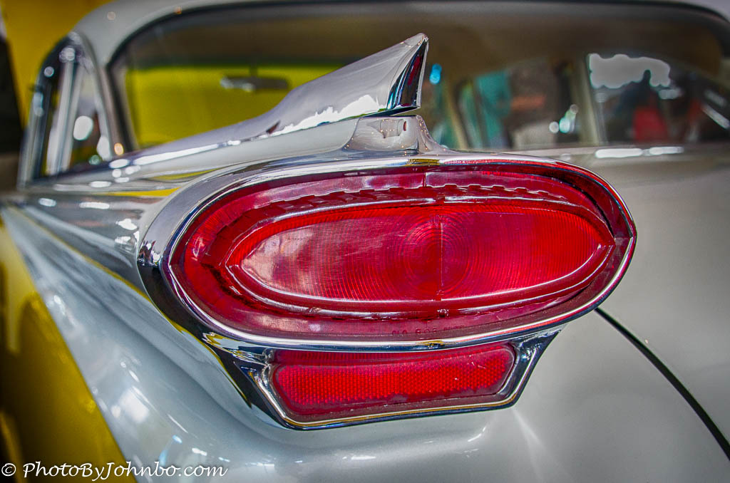 Speaking of tail fins, this late 1950’s model Oldsmobile was quite conservative in it’s modest integrated tail fin/tail light assembly. Surrounded by brightwork, the classic curves of the car body were accentuated by the straight lines of the tail fin extended as the body curves fell away.