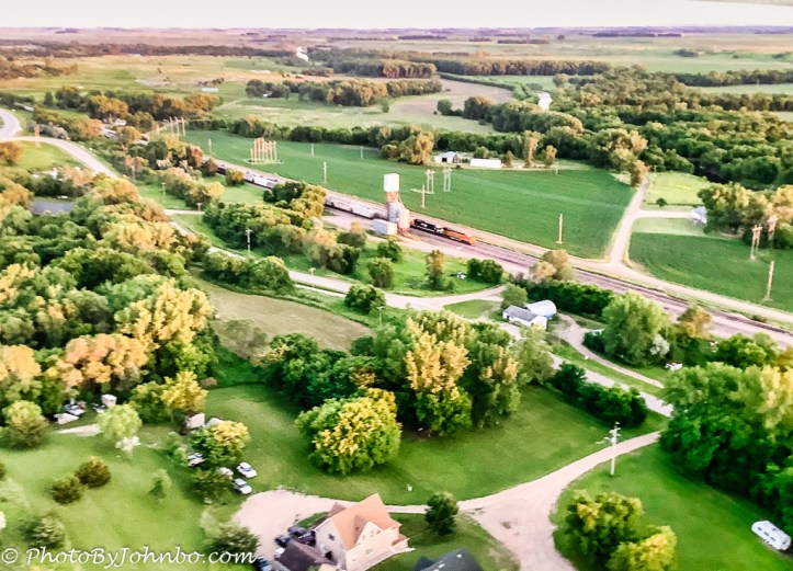 On a Civil Air Patrol activity a few weeks ago, I was flying in the right seat (just a passenger). Our first stop was at Jamestown. As we negotiated the landing pattern, I was snapping pics with my iPad Mini. You may recall a sunset view of the James River from last week. As we turned to our final approach, I spotted a train traveling through the lush, green countryside.