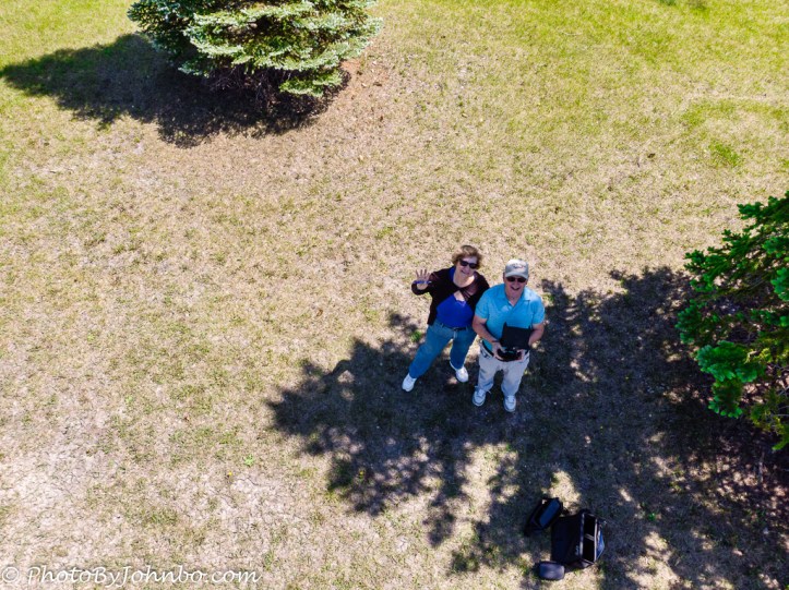 Since the opening photo features the western skies as a subject, I really couldn’t “fly around” it for angles from different “sides” or choosing high or low viewing angles, something that would be easy to do with a smaller ground based subject. To demonstrate, I include below two “selfies” captured from different angles with my flying camera. My wife, Lynn, is my visual observer. She ensures that the drone doesn’t stray too close to any objects like trees or light poles while I concentrate on positioning and composition. For those who might be exploring this avenue for your work, be sure to acquire the FAA Part 107 license and register your drone. Commercial use of a remotely piloted aircraft requires such a license and in many instances, posting on a social media platform is considered a commercial application even if no “money changes hands.”