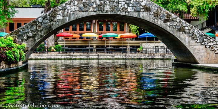 In San Antonio Texas, the famed River Walk provides plenty of opportunities for framing shots. As we traveled on a cruise, every bridge presented a framing opportunity. In this example, a colorful restaurant patio was framed by the bridge and the reflection of the colorful umbrellas.