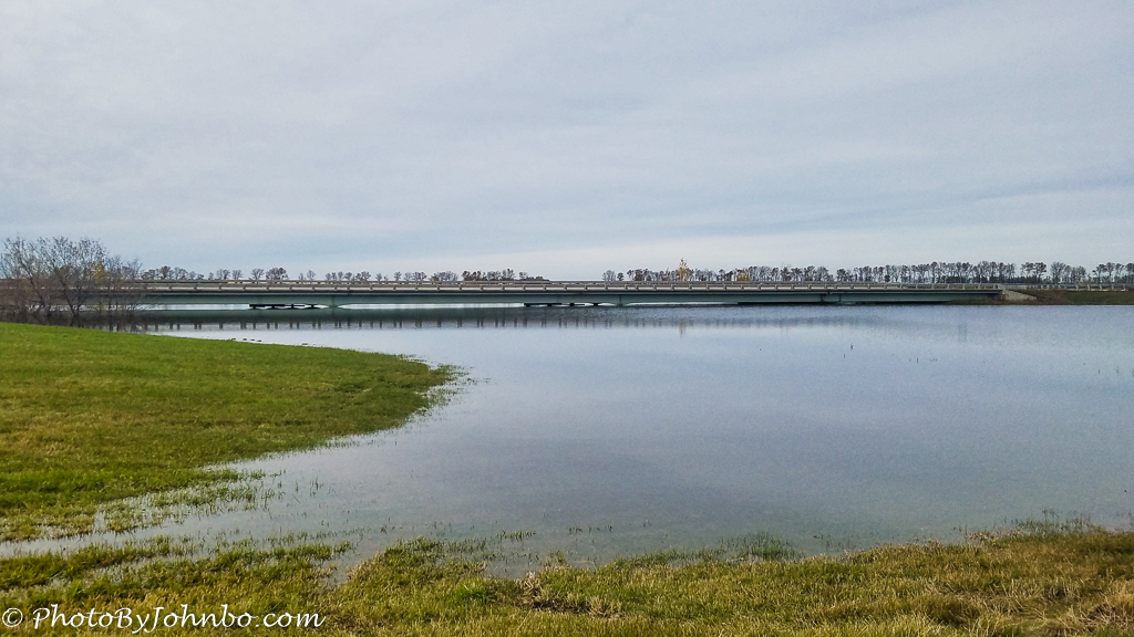 Last week I shared an aerial image captured in mid-October of flooded areas of the James River near Oakes, North Dakota. This week’s cellpic features a view from the parking area of the Alexander Henry Rest Area along I-29 between Grand Forks and the Canadian border. The Park River flows underneath bridges built on Interstate-29. This view features the southbound bridge. As you can see, the water level is nearly up to the base of the bridge. As I noted last week, that amount of flooding in the fall foretells the possibility of serious flooding along the major rivers in North Dakota in the spring.