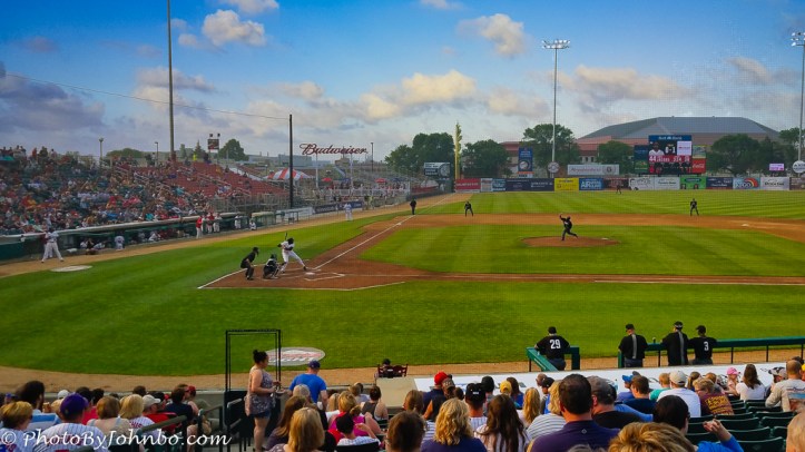 About the photo: This image was captured on July 6, 2019, in the early evening with the sun low on the western sky behind the stands at the left. The Saturday game started at 6 PM as usual, and this image was captured at the bottom of the 3rd inning, the Redhawks behind 2-1 to the Milwaukee Milkmen. Ultimately, the Redhawks came from behind with three runs in the bottom of the eighth to win 7-6. (The Internet is a wonderful thing, taking me only a few moments to find out the game results.) But I digress, the image was captured on a Samsung S7 cellphone at f/1.7, 1/2000 sec, ISO-50. Processed with Lightroom and Luminar 4, the image is augmented reality. In truth, the day was quite dreary with a thick layer of clouds. The only reason I knew where the sun was in the sky is the image timestamp. That dreary sky was replaced with one of my collection of skies. I might as well remember the day as a partly cloudy day.