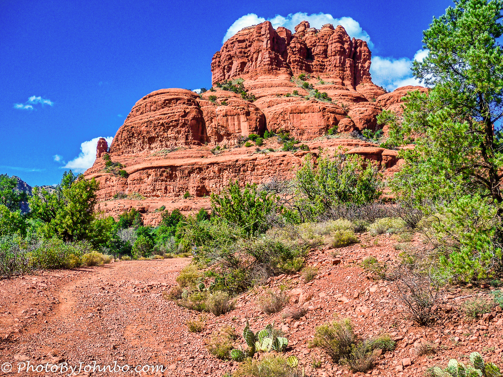 The terrain near Sedona, about a two-hour drive from Phoenix, is an unusual red sandstone base. Many natural sandstone outcroppings, like Bell Rock, in the image above, are major attractions to the thousands of visitors who spend time in this semi-arid desert climate. Due to its high altitude, winters are colder and summers cooler than Phoenix.