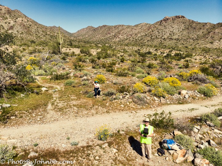 In 2019, my involvement with the Civil Air Patrol got me introduced to drone photography. I want to be useful in that portion of our mission, but I had no experience with flying these airborne cameras. I purchased a small unit that I felt would be suitable for travel and set about learning to manage the airborne platform and add a new dimension to my photography. As it turns out, drone flying became something my wife could participate in instead of just hanging around watching me take photos. Lynn is my visual observer, a necessary member of a two-person team. As a photographer, I spend much of my time looking through the camera’s view of the world. If I move the drone laterally to get a different view of my subject, it’s my wife’s job to ensure that I don’t fly into something that I cannot see in the camera’s view. She can also warn me when birds approach, an occasional occurrence. She also logs items like the date, time, location, and condition of the batteries, for each flight. The image above was captured from above our launch site in the White Tank Mountains near our place in Arizona.