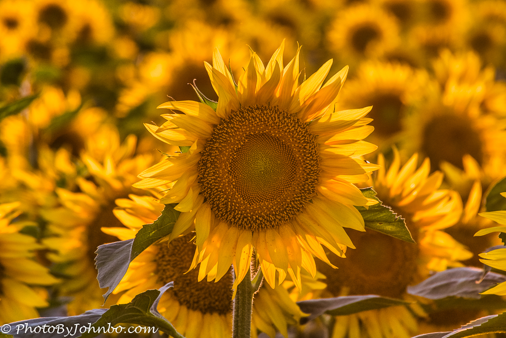 North Dakota is the country’s largest producer of those beautiful sunflowers. Nothing brightens my day more than to see sunflowers growing in the fields in our county. In an upcoming post, I will share a collection of sunflower images captured during that golden hour just before sunset. I didn’t even have to travel far, only about a 10-minute drive from our house brought me to this beautiful field of yellow and green.