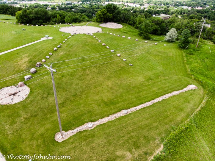 On the campus of Valley City State University, a class project has grown into a 30-acre park and educational destination. The Medicine Wheel is visible from my drone shot in the top of the image above. The wheel is a basic solar calendar that uses the alignment of the sun to the spokes of the wheel to determine sunrise and sunset during each of the four seasons. The center of the medicine wheel is the sun in a solar system model. A short walk will take you by each of the nine planets (including our dwarf planet, Pluto) in the solar system.
