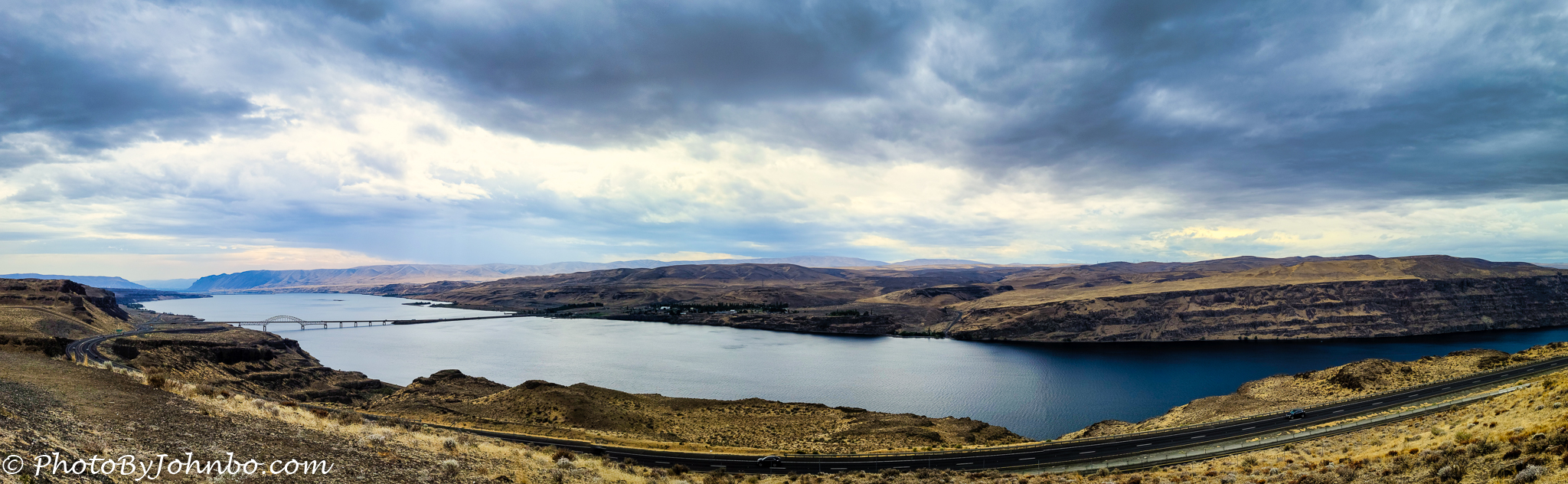 This is my third (and final) Cellpic Sunday from the rest area near Quincy. If the photo looks familiar, you may be remembering the image of the lake with the Interstate bridge from a few weeks ago. That image is one-third of three captured in a sequence that shows the entire lake view of Wanapum Lake as seen from that high vantage point.