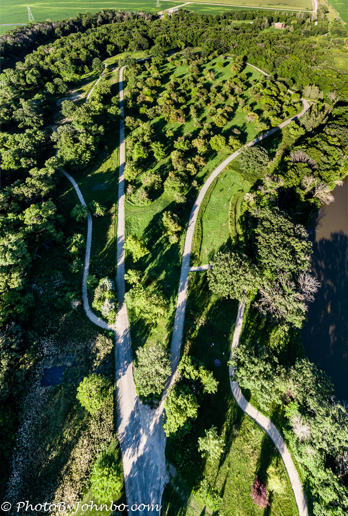 I have a new favorite park in Fargo. Orchard Glen Park came about when property along the Red River was vacated due to excessive flooding in the spring. From the parking lot, a trail descends toward the riverbank and for a distance follows the bend in the river as it swings from northerly to easterly on its way to Canada.