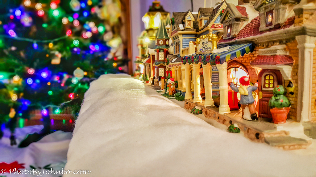In 2017, I’d gotten a Samsung S6 Cellphone. It was the first camera phone I owned that was capable of adjusting the image focus. We have a Christmas village scene that we display in our Fargo home. I thought it would be fun to experiment with that new ability by creating this street scene. Unfortunately, the tree and Christmas village will stay boxed up and put away awaiting a more joyous 2021 Christmas (we hope.)