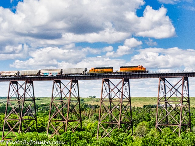 For the first Lens-Artists Challenge of 2021, Tina Schell asks us to share favorite images or favorite experiences in the last year. You can read her entire challenge post here. For a year of spending much time at home, I realize that I have quite a backlog of images, mostly due to a long trip in the great northwest where we safely visited many of our national parks and other venues that are out in the fresh air. One of my favorite images for the year features a bridge and a train, both favorite subjects of mine. The image was captured with my Mavic Air drone. It features the Highline Bridge, a long trestle bridge that carries trains high over the Sheyenne River Valley at Valley City, North Dakota.