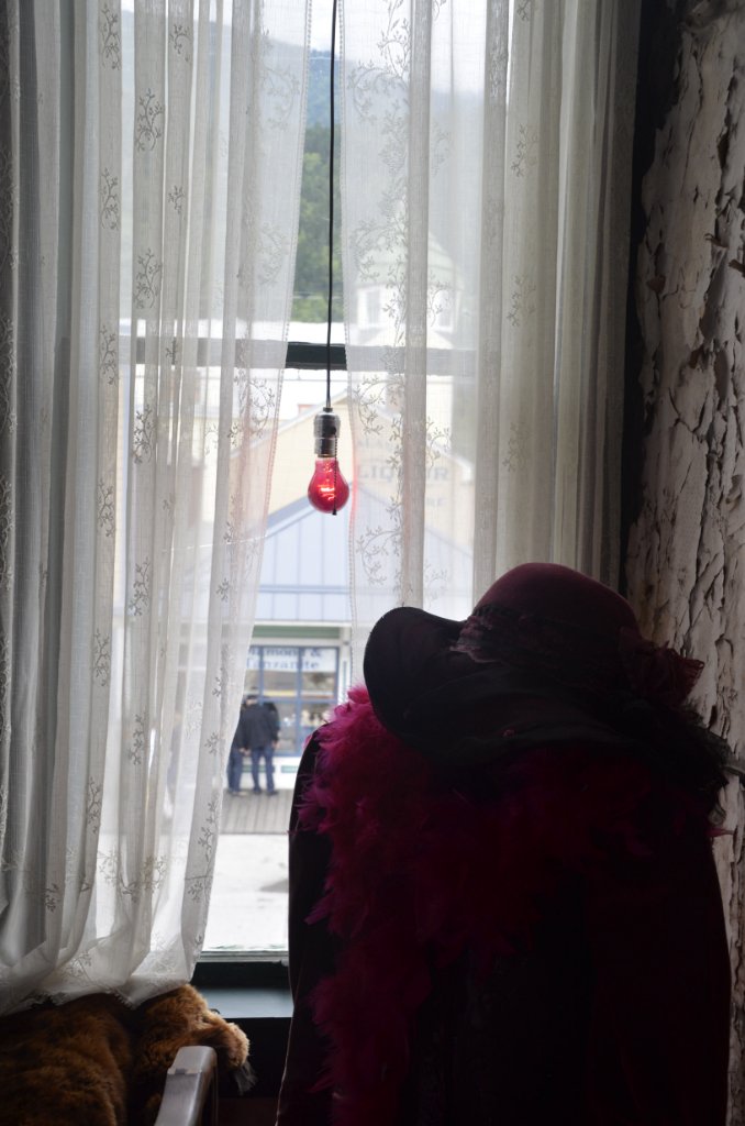 But enough about the museum. The photo immediately above was really a snapshot of one of the bedroom chairs with the lady’s boa and hat on the chair by the window, red light prominently dangling from the ceiling in front of said window. I don’t know when the brothel closed, however, I’m pretty sure that Skagway didn’t have electric lights when the short-lived gold rush was played out. But I digress from discussing the photo.