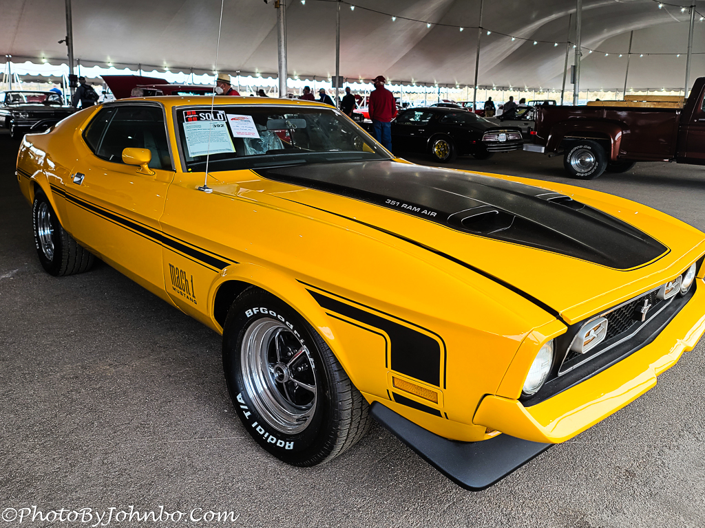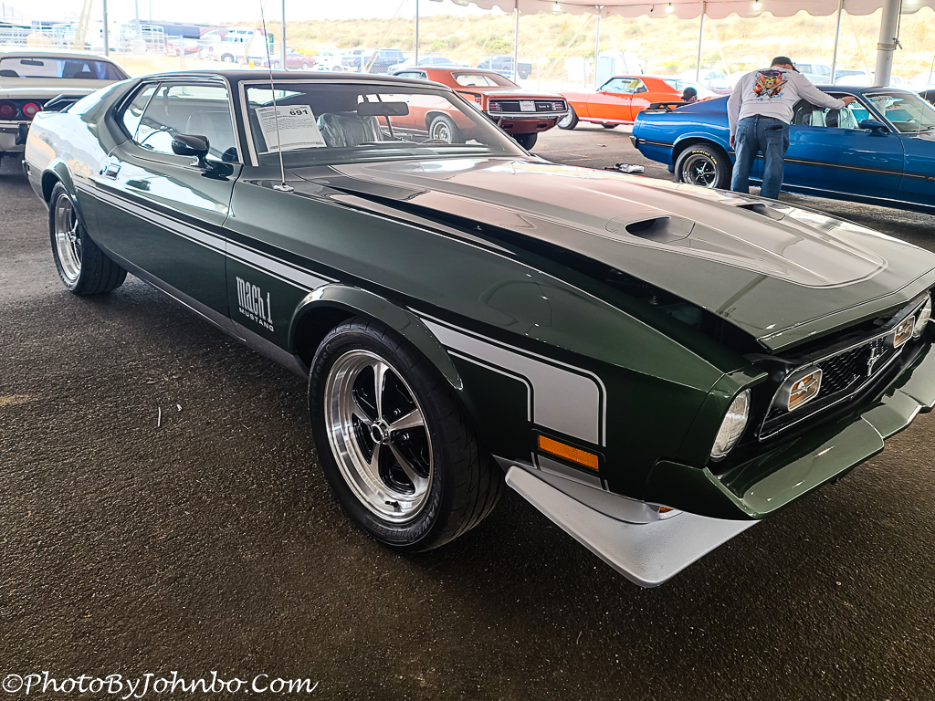 Though they may be regarded as bloated and piggish, I think I’d opt for the dark 71 Mach 1… though the blue 69-70 Mach 1 in the background is really my dream car.