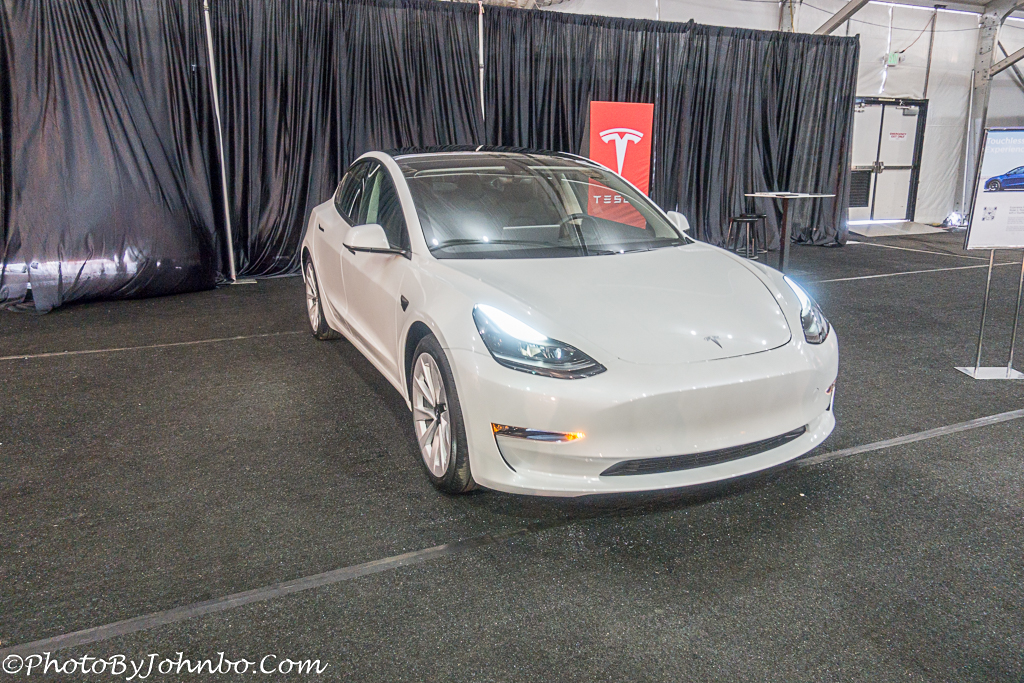 Tesla had their complete line of vehicles on display. I admit to forgetting to note which model Tesla I captured in the photo above. The least expensive Tesla is the Model 3. According to an article from Motor Trend (here), the Standard Range Plus model sells for around $40K USD and has a range of 263 miles (423 km).