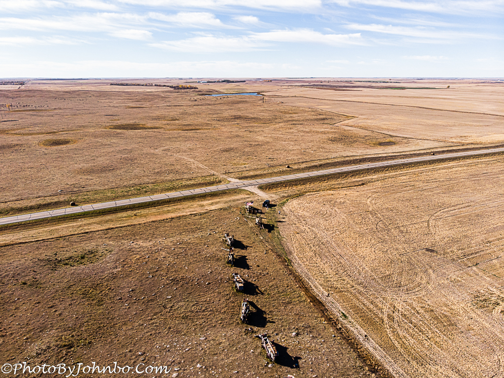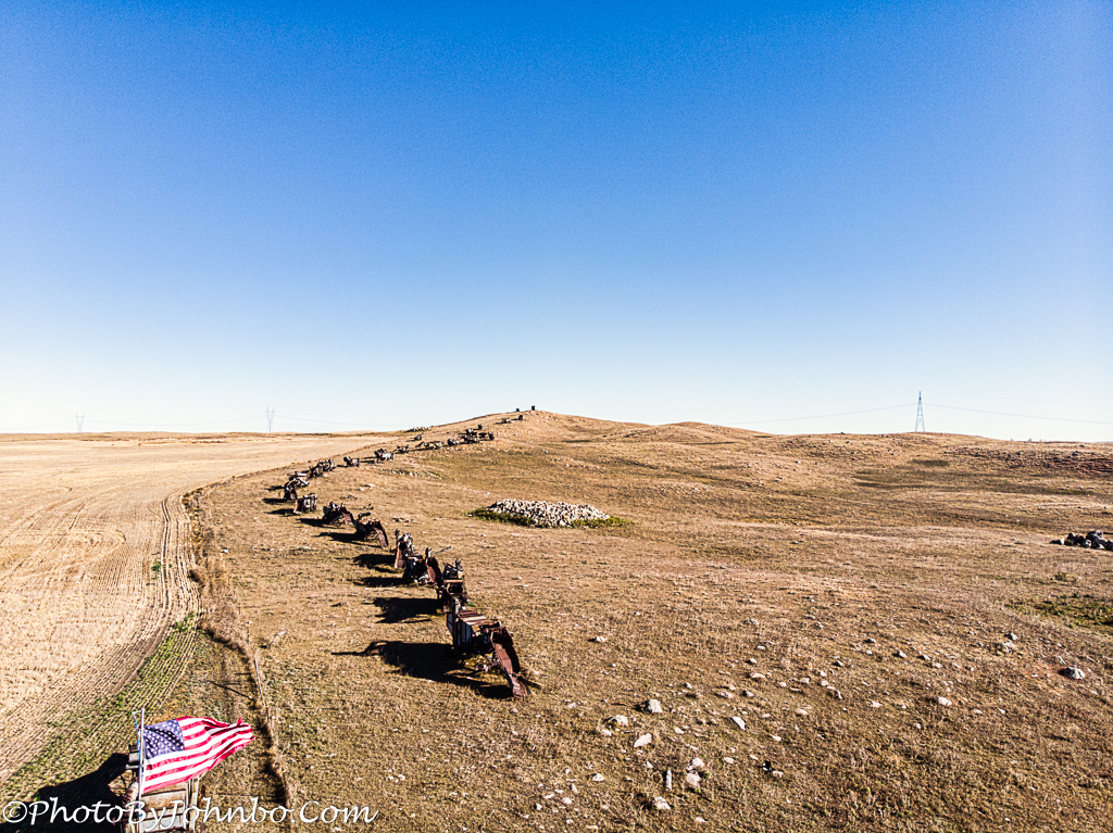 On this autumn day, it was a bit windy and quite chilly, so we limited our visit to the few minutes it took to launch the drone, capture a few shots from above the hill, and move on. Today, that hill is known as “Custer’s Ridge” and we plan to return on a summer day to wander up the hill and get a closer look at these “dinosaurs” of earlier times.