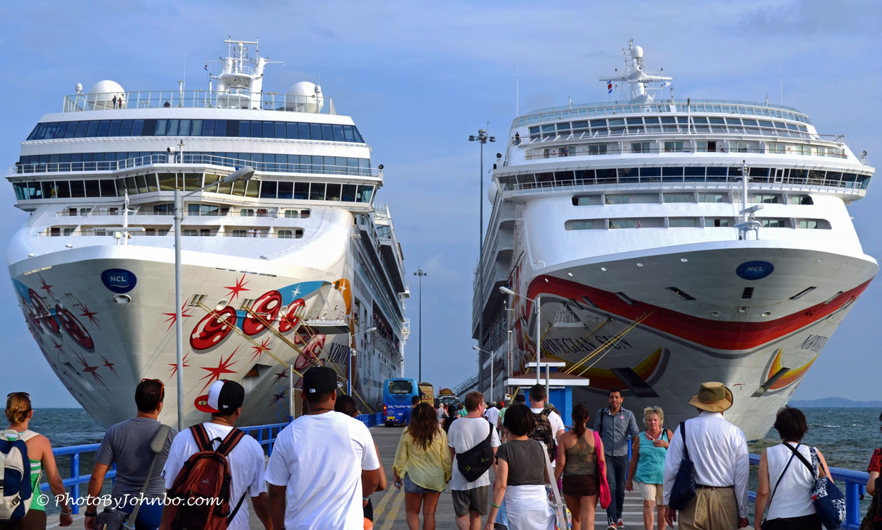 My first thoughts led me to think about all of the wonderful places we’ve visited over the years, but for my challenge-response, I have decided to focus on the journey rather than the destination. We love to get away whether it’s by car, airplane, train, or cruise ship. Our favorite getaway is the latter. Over the years, we’ve visited far away islands and another continent by cruise ship. The photo above features an image from the cruise ship dock at Puntarenas, Costa Rica. On the left is the Norwegian Pearl, on the right, the Norwegian Sun. Both ships were cruising from Miami to Los Angeles via the Panama Canal. Though we stopped at several ports in Central America and even one port in South America, the highlight of this journey was the trip through the canal.