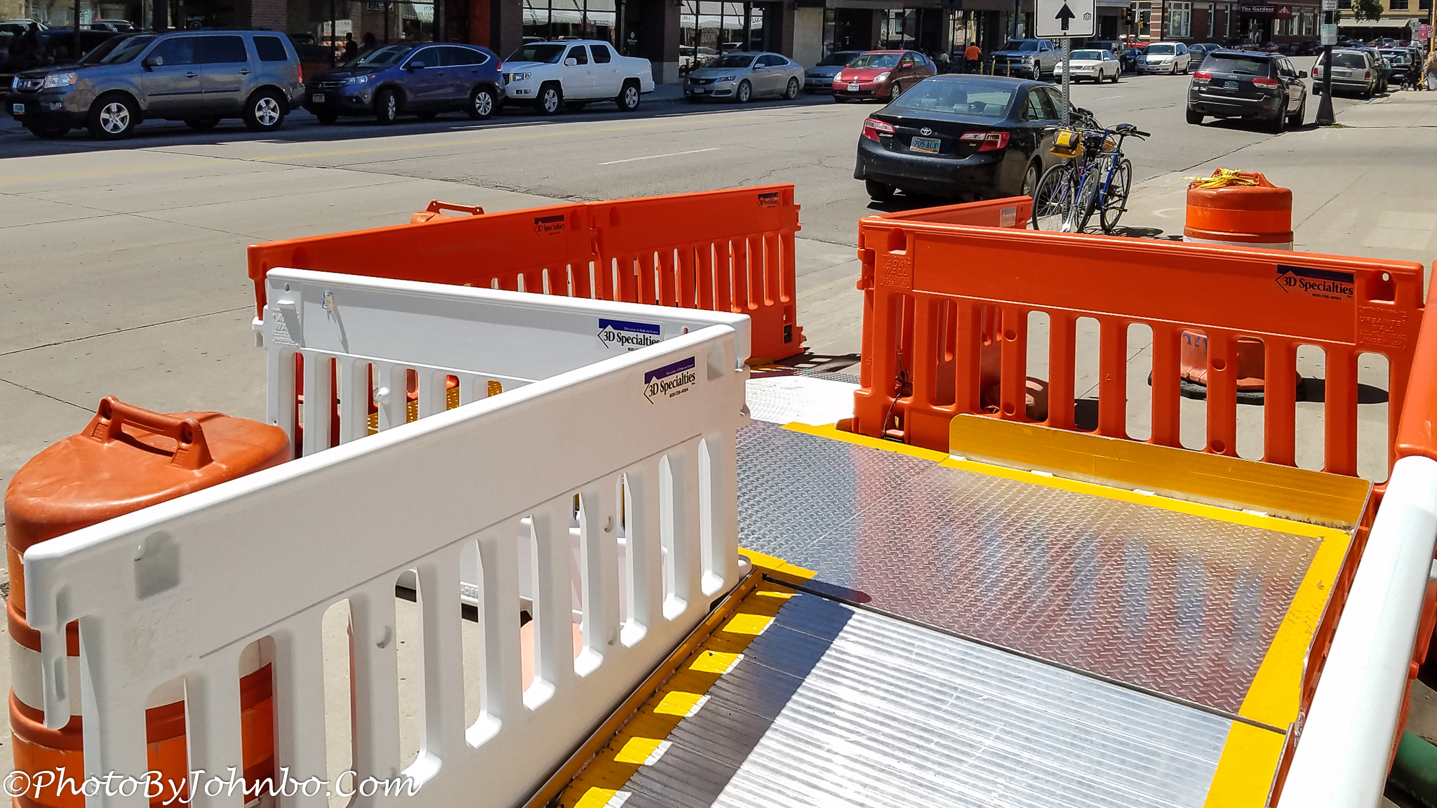 About the photo: I was looking through the Flickr auto archives and came across this bit of construction work. It was July 14, 2017 when I came upon the blocked sidewalk with this prefabricated walkway directing people around the construction. Flickr told me that the camera I used is the Samsung S7 that I was carrying at the time. The snapshot was downloaded from Flickr and tweaked in Lightroom.