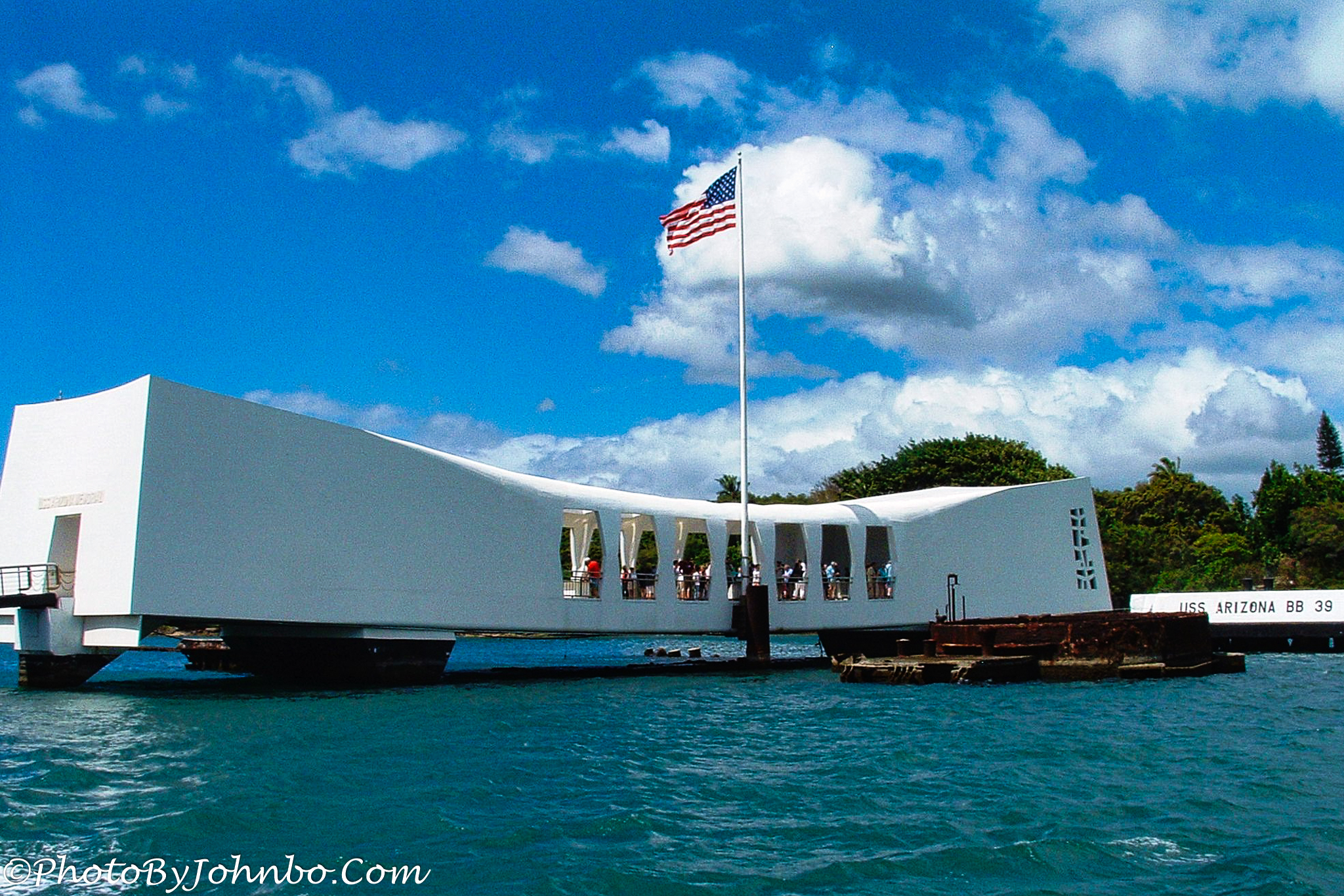 Using Lightroom Classic and Luminar AI, I’ve reprocessed the photos into 2K HD and posted them on my Flickr site. I found some interesting facts about the memorial on the Internet that I will also share. The memorial, designed by the US Navy was designed to accommodate 200 people, and it’s accessed by boat as the resting place of those 900+ sailors sits in 36 feet (11 m) of water where she sank on that Sunday morning.