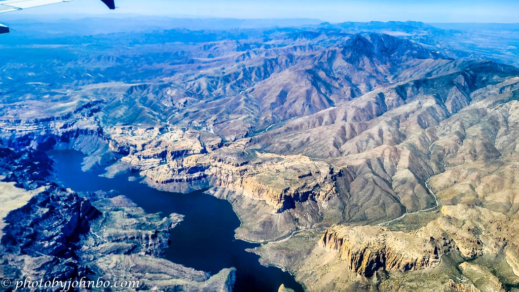 About the photo: About the photo: Captured by my Samsung S20U, I processed it in Lightroom and Luminar Neo. I had to crop out a bit of the aircraft window at the bottom of the image. As we flew over the area, we were too close to the upriver side of the lake for me to capture its entire length. Click on the image above to view it in 2K HD on my Flickr site (and see the gallery of Cellpic Sunday images from this Flight to Phoenix series.)