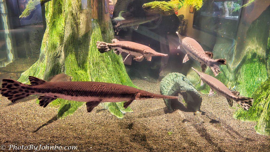 When we visited Emerald Isle in January, one of the highlights of our stay was a visit to the North Carolina Aquarium at Pine Knoll Shores. Located on the northern end of the island, it is one of four aquariums around the state that bear the name “North Carolina Aquarium.” Our visit there introduced us to both freshwater fish and ocean fish that are found in and around North Carolina. One such fascinating species is the longnose gar.