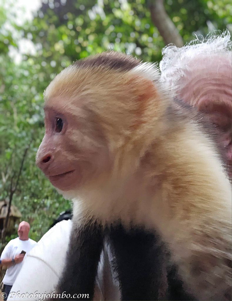 My opening photo was taken on Roatan Island, Honduras. Gumbalimba Park is one of the island’s major attractions for cruisers, and the most entertaining location in the park is Monkey Town. The staff invites the friendly capuchin monkeys to interact with the guests—well, they aren’t actually invited; they sure interact. I had my cell phone when this little guy hopped on my arm. He took a selfie by resting his hand on my phone and pressing the shutter button.