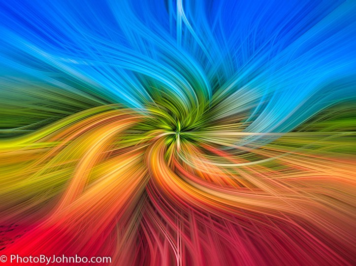 In 2016, I discovered a YouTube video that taught a Photoshop technique that creates what the author calls “twirls.” My opening photo is one of my attempts at creating a twirl from a typical image. I learned in that process that some images make better twirls than others. Incidentally, one of the twirls I created almost mirrors a color wheel. The colors are not in the proper sequence but are primarily present: Green-Red, Orange-Blue, and Yellow-Violet. I enhanced the twirl’s colors by increasing the clarity and saturation in the final image.