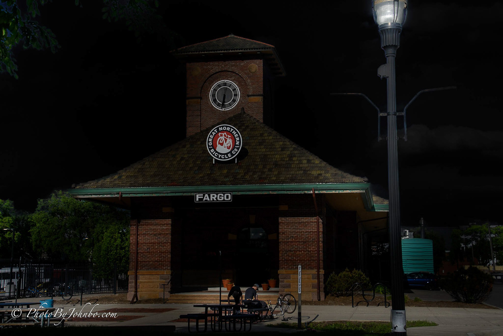 When the Fargo train depot moved to a different location, a restaurant opened on the former depot site. The restaurant didn’t survive but was replaced by the Great Northern Bicycle Company, which was named in honor of the historic Great Northern Depot. The accidental inclusion of the street lamp gave me the idea for a day-to-night conversion using my iPad. Lightroom Mobile could undoubtedly handle more pedestrian edits if I can do something as complex as one of these conversions.