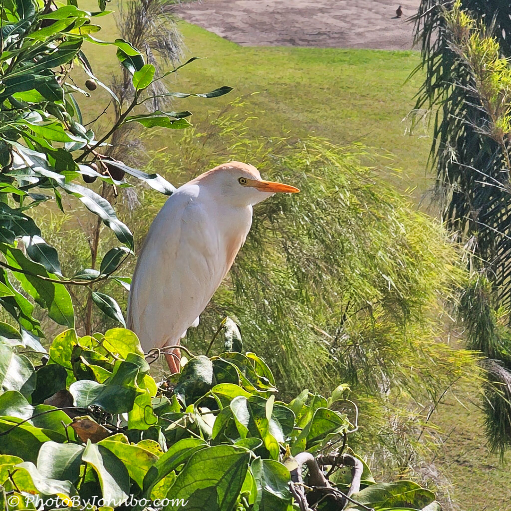 These white herons are often seen in fields rather than streams, foraging for insects disturbed by the movement of large animals. During the breeding season, they develop golden plumes on their heads, chests, and backs, adding color to their otherwise white feathers. They nest in colonies, often near water, and build nests of sticks in trees or shrubs. I sourced this information from Wikipedia here.
