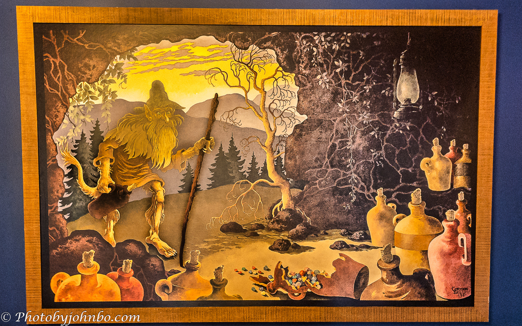 But the legend goes deeper than the depiction by Corydon Bell, the artist and author—along with his author-wife, Thelma—who helped immortalize the creature in mid-century mountain literature. The jars full of gemstones and stolen moonshine are but one of his legendary quirks. The Boojum also had a girl—Hootin’ Annie Ginn—who, according to mountain lore, fell in love with him after catching sight of his lonely, sorrowful eyes. While the men of the valley swore he was a menace, Annie saw something gentler in the great shaggy creature and chose to live with him deep in the woods. When he wandered off at night in search of rubies and sapphires, she’d call out to him with a strange cry somewhere between an owl’s hoot and a monkey’s chatter, a sound the old‑timers claimed you could still hear echoing through the Balsams if you listened just right.