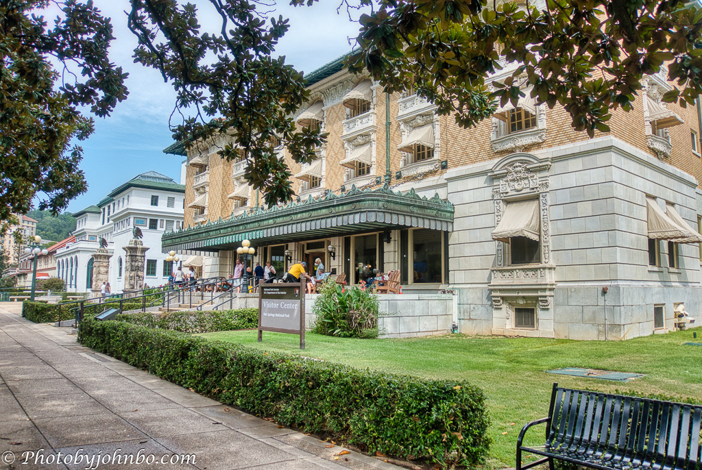 The Buckstaff Bathhouse, shown here with its classical columns and blue-striped awnings, has been a fixture on Bathhouse Row since 1912. It was known for offering traditional thermal treatments, mineral baths, steam cabinets, and massages, using water directly from the hot springs. Unlike many of its neighbors, Buckstaff maintained continuous operation for over a century. In 2023, the building underwent renovation to preserve its historic features while updating its facilities. Despite the construction, Buckstaff remained open to visitors during the remodel, continuing its legacy as the only bathhouse on the Row still offering full spa services drawn from the original geothermal source.